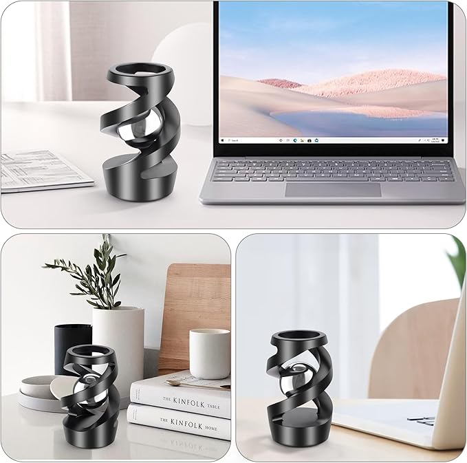 - [ Fine Workmanship ] This kinetic desk fidget toy is well made of metal, fine workmanship make it round and smooth, even finish on the paint job and the chrome ball finish looks great. Nice fabrication on the solid aluminum spiral cage and base.With a simple and elegant design, the desk toy is thoughtful and meticulous product design