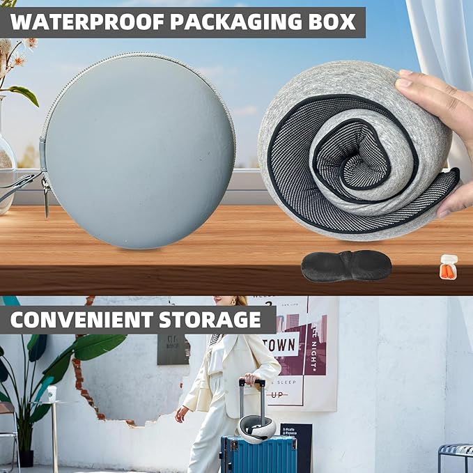 - 【NOTE】Our storage box is waterproof to prevent the travel pillow from getting soaked during travel. After opening, let the travel pillow sit for a while to help the memory foam fully rebound. Any initial odor is normal; just place the pillow in a well-ventilated, sunny area to dry. If there is any problem with our products, please feel free to contact us, and we will solve the problem as soon as possible until you are satisfied.