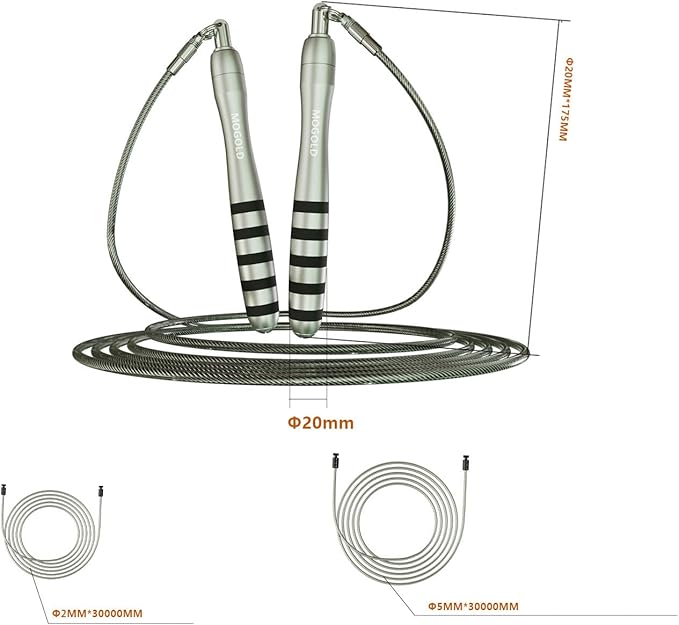- đ ăSMOOTHER & FASTERă: MOGOLD Rope Skipping has built-in with high-quality Dual-ball bearings to provide you with comfortable jump exercises. It supports fast jumps while protecting you from any potential tangles, satisfying your needs for safety and convenience at the same time