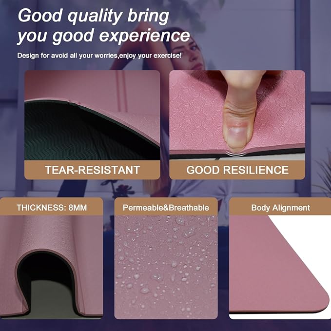 - 【Expansive Dimensions for Enhanced Comfort】With a generous 32-inch width and an 8mm cushioned profile, this yoga mat prioritizes unrestricted movement across diverse poses and exercises. Its expanded surface area accommodates dynamic routines, while the substantial thickness delivers joint-protecting support tailored to yogis seeking added comfort during prolonged sessions.
