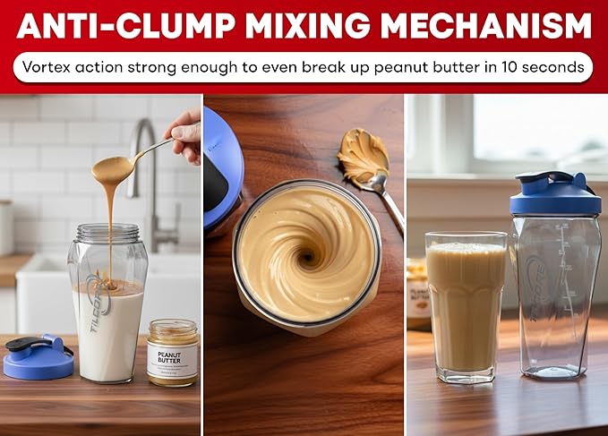 - SHATTER-RESISTANT & BPA-FREE BUILD FOR DURABILITY & HYGIENE: Made from shatter-resistant polycarbonate, this vortex shaker bottle is 100% BPA-free and built to last. Use it as a gym shaker bottle, shaker bottles for protein mixes, or protein shake shaker. The wide opening makes it easy to fill and clean, while the rounded base ensures smooth mixing. Ideal for protein shakes, smoothies, and pre-workout blends.