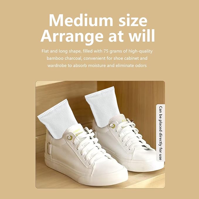 - Natural Bamboo Charcoal Bags:The shoe deodorizer bags is made of natural bamboo charcoal,safe for children and pets. You can use it in shoe cabinets, closets, cars, refrigerators, diaper pails, pets, shoes, and anywhere else you need it