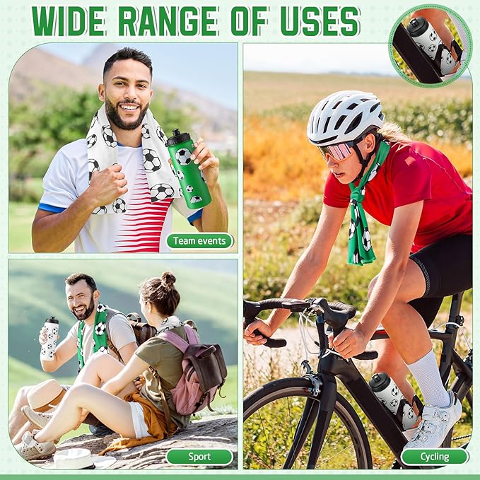 - Wide Application: our soccer sports bottles and cooling towel is perfect for your sport, in addition to using it on the soccer field, this towel can also be used for other activities and outdoors, such as yoga, fitness, hiking, cycling, running or large barbecues, camping etc. They can help you stay hydrated and cool during activities, improve overall comfort and athletic performance, and can also be given as thoughtful and practical gifts to your team fan friends or party