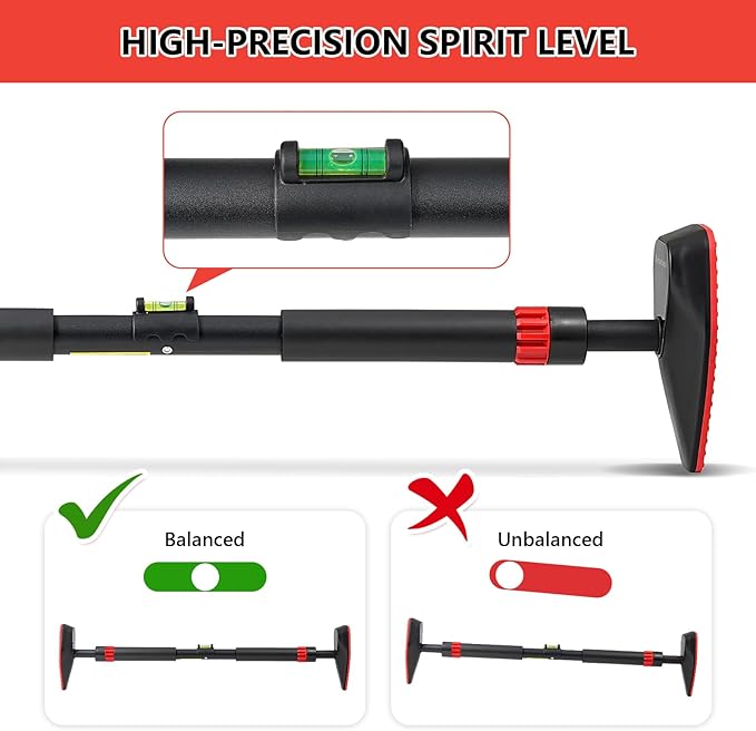 - 【Adjustable】This pullup bar features an adjustable range of 29.1in-38.1in, making it suitable for various exercises such as pull-ups, sit-ups, push-ups, and stretching. (Please measure your door frame dimensions before purchase, and avoid installation on fragile door frames like glass doors, hollow-core doors, or similar structures.)