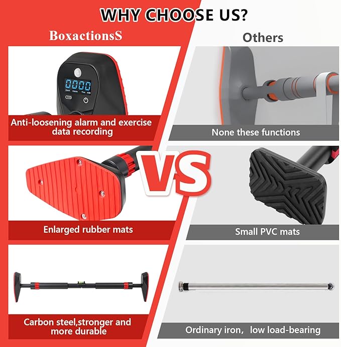 - 【Safety Design】Touch The Power Button for 5 Seconds to Turn on The door frame pull up bar.When the chin up bar is loosely installed or tilted, the smart panel will continuously emit an alarm sound. When correctly installed, it can support a weight of up to 550 lbs.