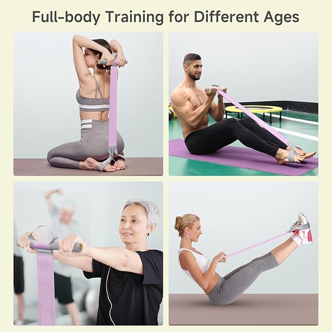- 【Anti-Slip Handle & Pedal】The full-body exercise band with handles features non-slip handles and pedals for a secure grip during workouts. The ergonomic pedal design also serves as a stable stirrup puller for exercise, helping you perform controlled leg and core movements with confidence and safety.