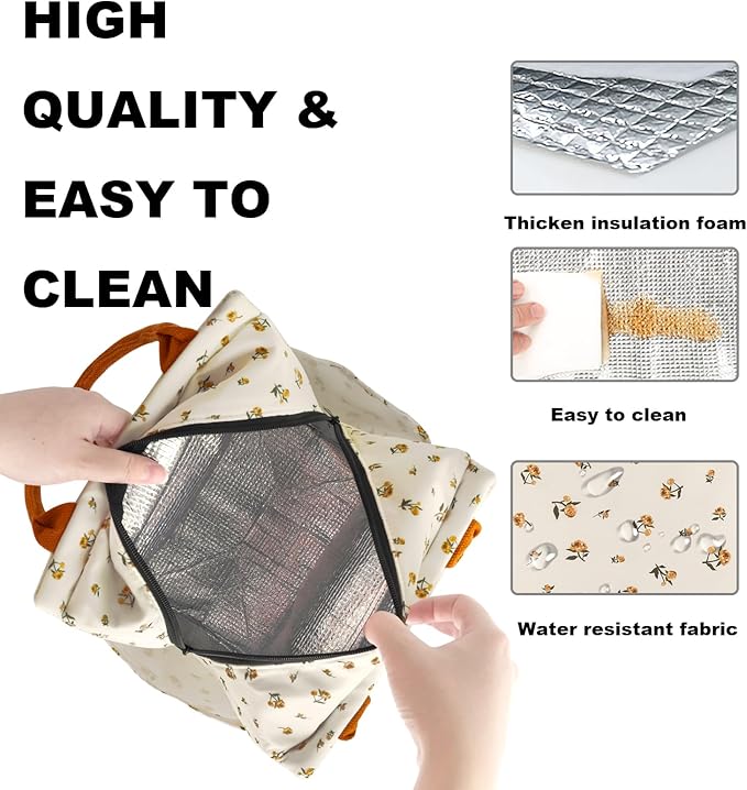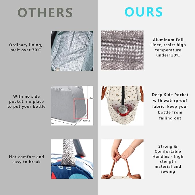 - ❤LONG-LASTING: Strong linen handles and heavy duty nylon connect by dense stitching can provide long-lasting against daily activities. Feel free to carry your food with this lunch bag and enjoy your lunch!