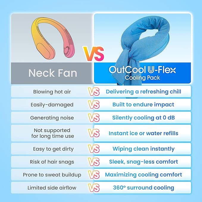 - 【Silent】Unlike neck fans, the ice packs work silently without the risk of hair tangling or getting blown around.
