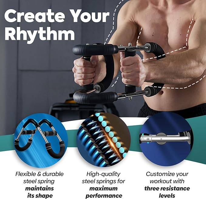 - PREMIUM BUILD & COMFORTABLE GRIP - Crafted with high-strength alloy springs and reinforced steel, this twister arm trainer ensures maximum durability and longevity. The non-slip foam handles provide a secure and comfortable grip, reducing hand fatigue and allowing longer workout sessions. With a sturdy U-shape frame, this device offers safe, smooth, and efficient movement for an optimized workout experience.