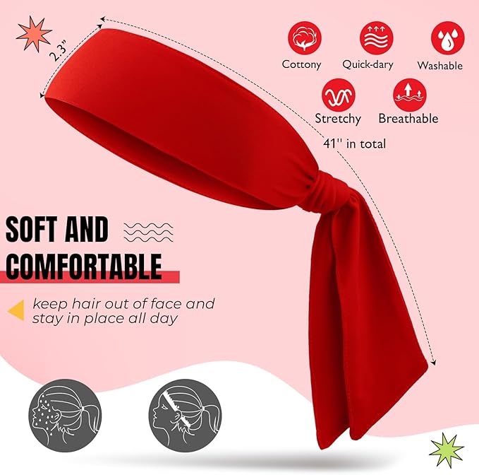 - Elegant Red Color: the red tie headband color suits almost every outfit and is ideal for multiple occasions; Whether you're playing sports, exercising, or just tying your hair back for comfort, its chic red color adds style to your daily ensemble