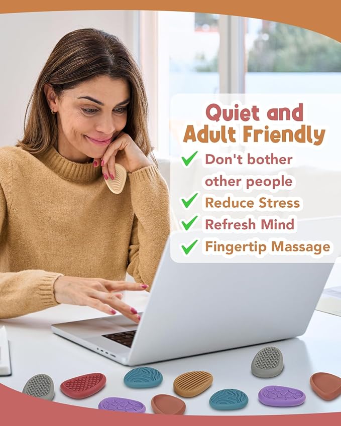- Adult Fidget Toys for Anxiety and Stress: The size of each fidget worry stone fits perfectly for holding in your hand, making it easy for adults teens kids to repeatedly rub with one hand. Keep your hands busy and mind focused during work, helping to quit bad habits like nail-biting, smoking, and shaking legs. Great office desk fidget sensory toys for adults improve focus and ease anxiety