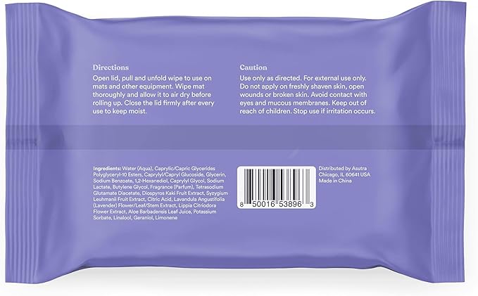 ASUTRA Yoga Mat Cleaning Wipes (Lovely Lavender), 1 Pouch (30 Wipes) - No Slippery Residue, Deep-Cleansing for Fitness Gear & Gym Equipment
