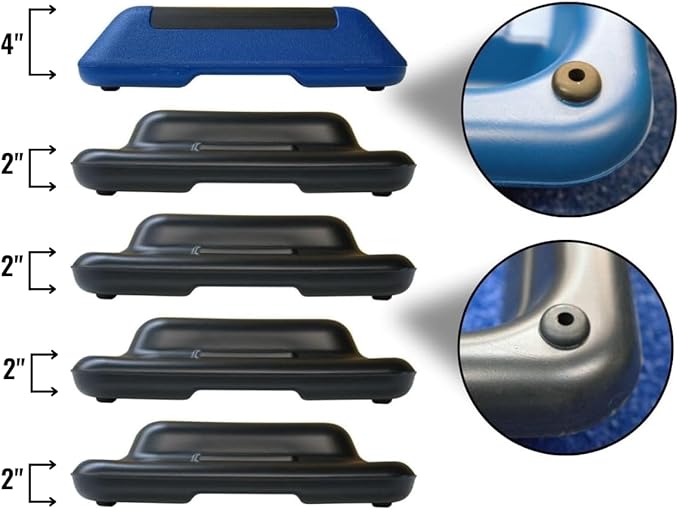 - AEROBIC STEP PLATFORM – Includes stackable step risers for exercise, allowing you to adjust the height for different fitness levels. Perfect for step-ups, lunges, squats, and push-ups.