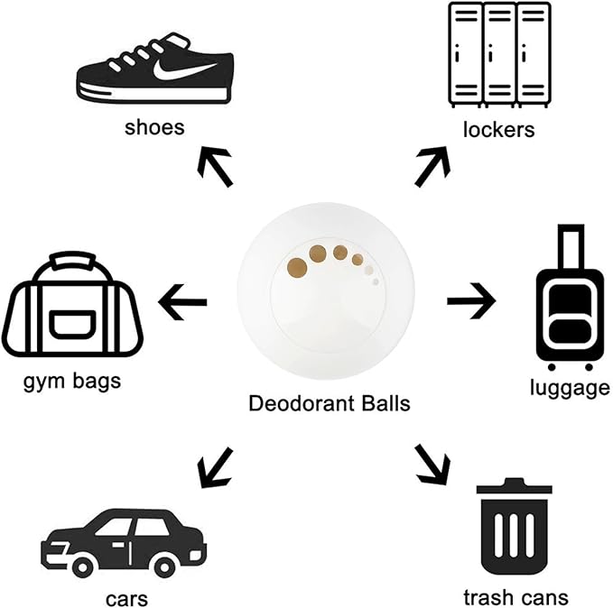 - The deodorant balls fit in all shoes sizes, including kids; effectively attacks odors in sneakers or other footwear, as well as gym and gear bags