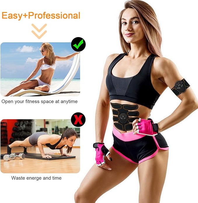 - Flexible and portable: EMS muscle trainer is ultra-light, ultra-thin, wearable, and easy to carry. ABS muscle trainers can be worn unobtrusively under your clothes. It is very suitable for muscle training during reading, watching movies, doing housework, and even during business or leisure.