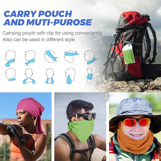 - Multi-purpose - Measuring Size: 40" x 12", Whether you're into hiking, jogging, yoga, barre, HIIT, cycling, Running or breaking a sweat in your living room, the cooling towel will fit be all you need to step up your fitness regime. Whether you rock it as a mask, headband, scarf, or bandana, it'll keep your head cool for hours.