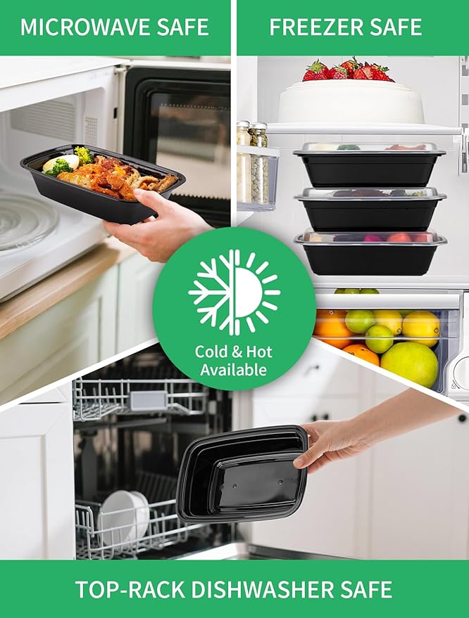 - Durable Plastic Construction – Made from high-quality, durable plastic, these meal prep containers are designed to last and withstand daily use without breaking or warping