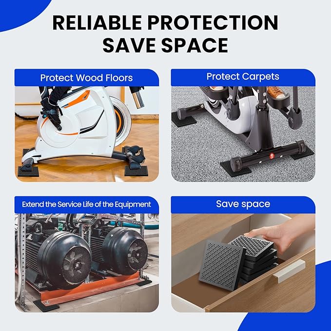 - Lnakio exercise equipment mat, built-in internal steel plate, has high strength and durability, ensuring uniform weight distribution, preventing heavy equipment compression, and improving load-bearing capacity; the surface grid design greatly increases the anti-slip and stress-bearing area, which is very suitable for treadmills, elliptical machines, rowing machines, fixed bicycles, dumbbell suits, home gyms, rebounders, etc