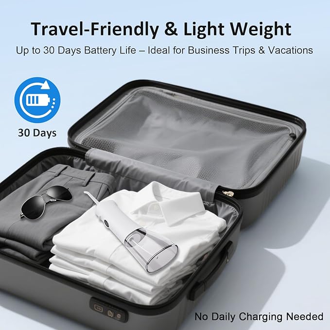 - 30-Day Battery Life with USB-C Fast Charging: Fully charges in just 3 hours, this portable water flosser runs up to 30 days on a single charge. Comes with a USB Type-C charging cable (adapter not included). Perfect for travel, business, or daily use. Toss it in your carry-on or gym bag—your oral care stays uninterrupted.