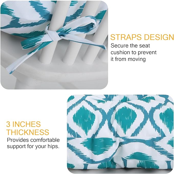 - Ties to Keep Stable: The attached 4 ties can keep bench cushions for outdoor furniture securely fastened to your chairs and not moving easily. The outdoor seat cushion is a built: double layer of delicate stitched edges for added aesthetics