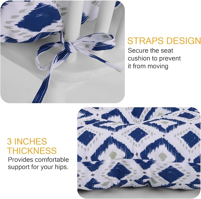 - Ties to Keep Stable: The attached 4 ties can keep bench cushions for outdoor furniture securely fastened to your chairs and not moving easily. The outdoor seat cushion is a built: double layer of delicate stitched edges for added aesthetics