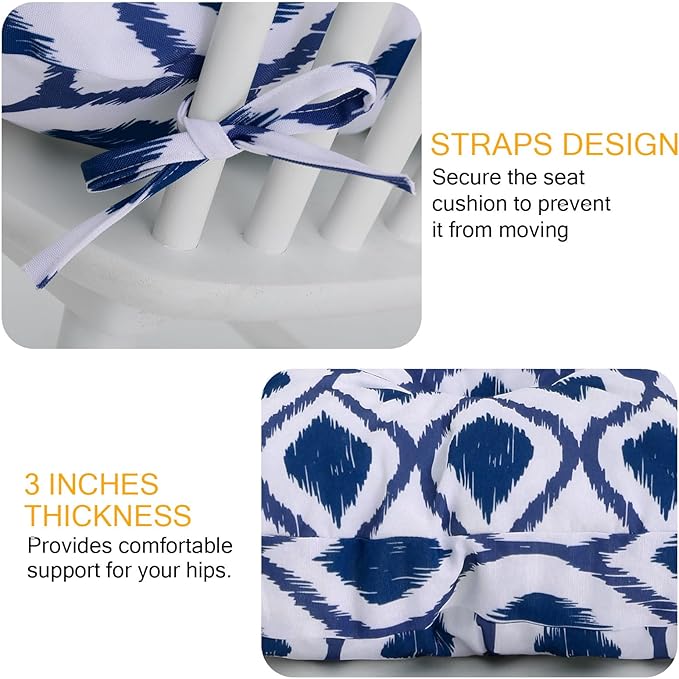 - Ties to Keep Stable: The attached 4 ties can keep bench cushions for outdoor furniture securely fastened to your chairs and not moving easily. The outdoor seat cushion is a built: double layer of delicate stitched edges for added aesthetics