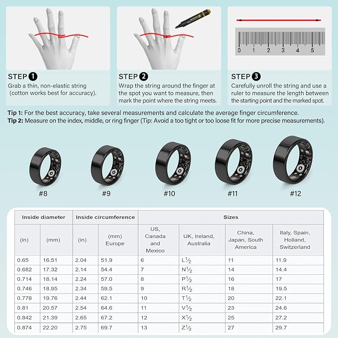 - Waterproof Fitness Ring – Durable, waterproof design allows you to wear your smart ring during workouts, outdoor activities, and daily tasks without worry.