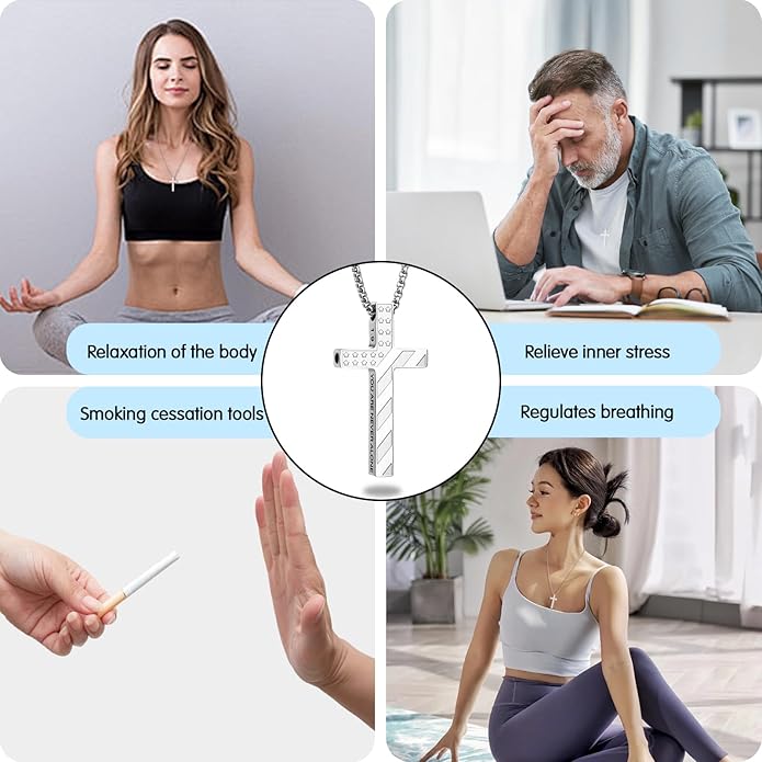 - 【Unique Quit Smoking Necklace】 This cross breathlink pendant combines spiritual symbolism with therapeutic breathing mechanics. Both a badge of devotion and a discreet stress reliever, stop smoking necklace tactile design guides a 4-second box breathing cycle while immersing the user in faith-centered positive thinking. Reduces anxiety and improves concentration