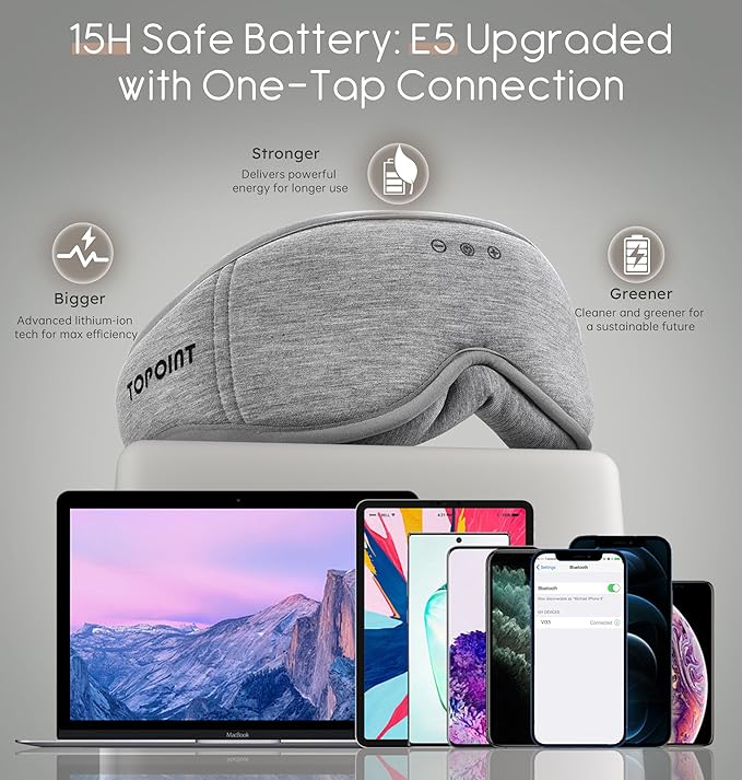 - 5.4 Bluetooth for Next-Level Sound: More than just a blackout sleep mask! It’s your personal sleep headphones sound system. High-res 96kHz audio & ultra-fast 900Kbps transmission deliver seamless music, podcasts, or white noise. Built-in microphones ensure clear calls whenever you need them