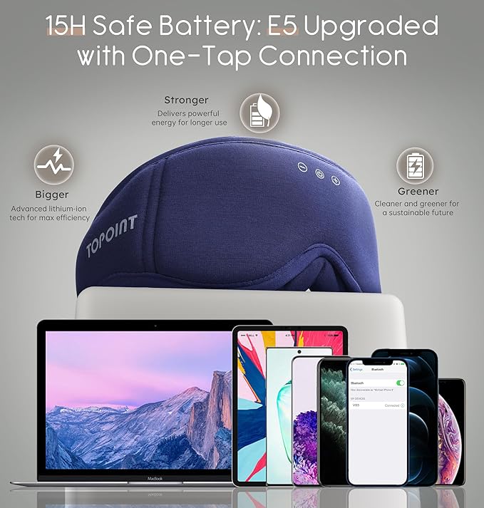 - 5.4 Bluetooth for Next-Level Sound: More than just a blackout sleep mask! It’s your personal sleep headphones sound system. High-res 96kHz audio & ultra-fast 900Kbps transmission deliver seamless music, podcasts, or white noise. Built-in microphones ensure clear calls whenever you need them