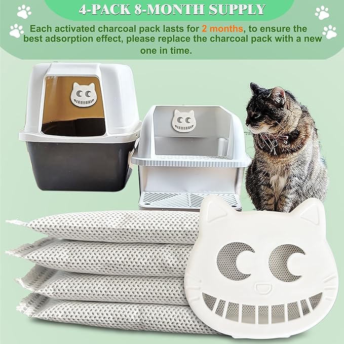 Unscented Cat Litter Box Deodorizer Kit Stick-On Activated Carbon Odor Eliminators Compatible with most manual and automatic litter boxes (4 Refills+ 1 Box) (White, Unscented)