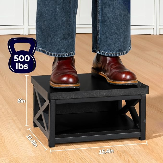 - Heavy-Duty & Stable Build – Crafted with waterproof engineered wood and a rustproof steel frame, this sturdy step stool supports up to 500 lbs. A durable wooden step stool for adults, ideal as a bed stool, bathroom stool, or closet step stool.