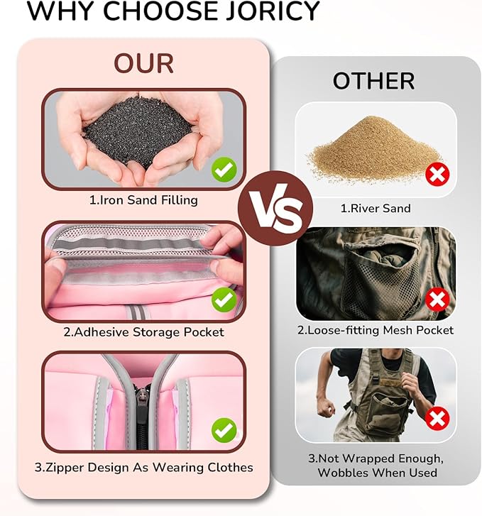 - The JORICY womens weighted vest adjustable weight is adjustable in weights and tightness allows for a comfortable and secure fit during routine workouts. The addition of the ironsand weights provides a challenging resistance that has taken your cardio and strength training to the next level.