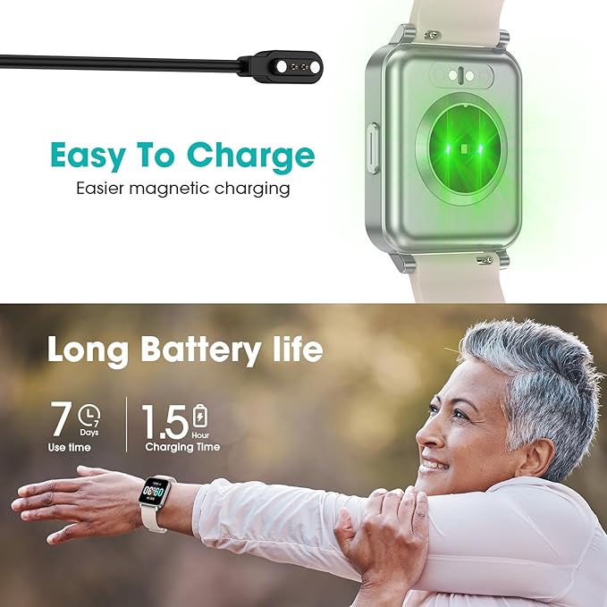 - ใ๐๐จ๐ง๐ ๐๐๐ญ๐ญ๐๐ซ๐ฒ ๐๐ข๐๐ใThis fitness tracker uses a simple magnetic charging method, enabling quick charging with just a gentle touch. It only takes 1.5 hours to fully charge and can last up to 7 days on a single charge.