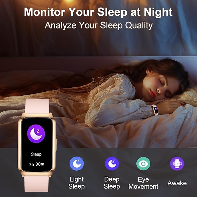 - Advanced Health & Life Management:Activity trackers track your 24/7 heart rate,blood oxygen monitors,empowering you to stay proactive about your well-being,the sleep tracker keeps track of time spent in different sleep stages including REM,light sleep,deep sleep,dive into insightful sleep monitoring to optimize your rest for peak performance.Discover a smarter way to a healthier lifestyle with fitness tracker(Note:Only for reference,not for medical use)