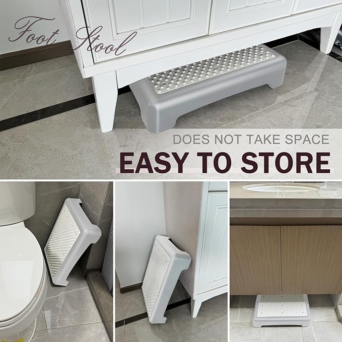 - 💧【Anti-Slip & Waterproof for All-Surface Safety】The step stool is designed with your safety in mind, featuring a removable silicone-textured mat on the surface that provides an excellent grip, preventing slips even when your feet are slightly wet. Each of its feet is equipped with dual non-slip pads, ensuring stability on various surfaces like tiles, wood, and concrete. What's more, it comes with 12 drainage holes, making it highly waterproof and perfect for use in wet areas such as bathrooms and kitchens. No matter the environment, you can step on it with confidence, knowing you're protected from slips and falls.