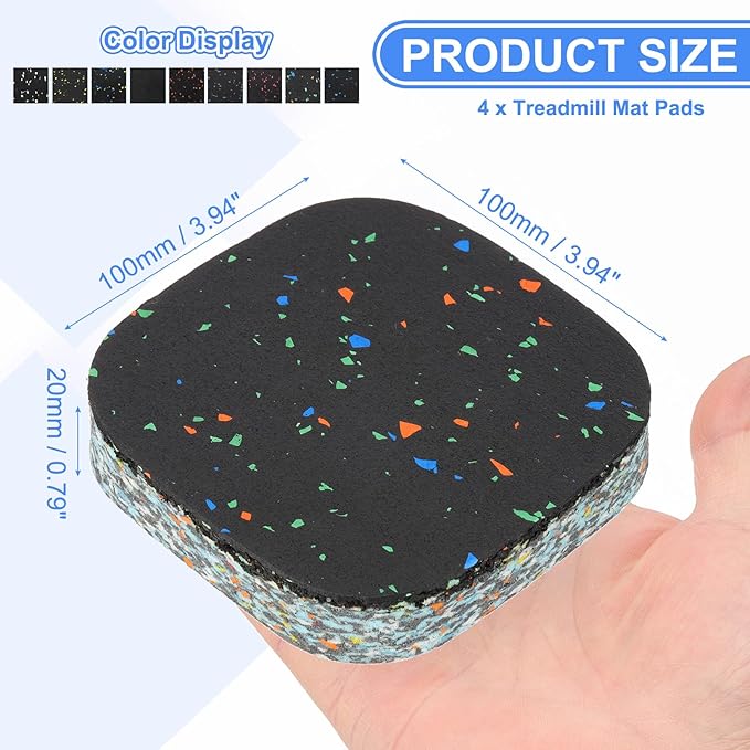 - Specification: Color: Mixed Color; Material: Foam; Total Size: 100 x 100 x 20mm / 3.94 x 3.94 x 0.79 inch (L*W*T); Packing List: 4 x Treadmill Mat Pads