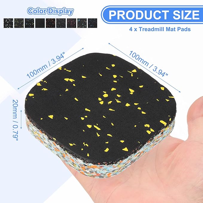 - Specification: Color: Yellow; Material: Foam; Total Size: 100 x 100 x 20mm / 3.94 x 3.94 x 0.79 inch (L*W*T); Packing List: 4 x Treadmill Mat Pads