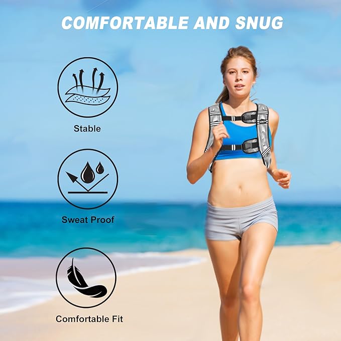 - Adjustable Straps & Reflective Stripes: Each weighted vest has adjustable straps to prevent slipping or sliding, ensuring a better fit for users of all chest sizes and improving exercise efficiency. The reflective strips on both sides of the weighted vest reflect vehicle headlights for safer night running, keeping you away from traffic accidents in any weather conditions (rain, fog, darkness), day or night