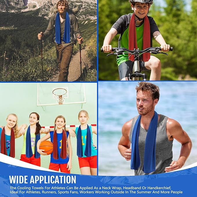 - Quick Cooling and Reusability: these bulk cooling towels are machine washable, the breathable mesh of cooling towels bulk allows you to easily activate the refrigerated towel by soaking, wringing and breaking; You can reuse these cooling towels for hot weather many times; The good cooling design can help to absorb sweat from your skin and keep you cool