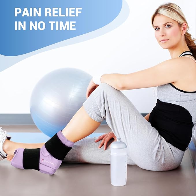 Comfytemp Large Ankle Foot Ice Pack Wrap for Plantar Fasciitis Relief, Feet Brace for Sprained Ankle, Heel Spur, Swelling, Tendonitis, Pain, Hot & Cold Therapy, Surgery Get Well Gift, 1 Pack (Purple)