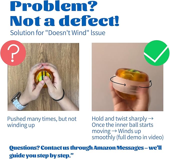 - 【What's in the Box – All Checked & Complete】 ✔ 1× Gyro Ball (No Counter) ✔ 1× Finger Resistance Band ✔ 1× Safety Rope ✔ 1× Instruction Manual Still unsure how to use it? 📺 Watch the quick tutorial video on this page to learn in 30 seconds.