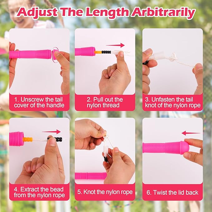 - Long Rope Design: With EXTRA 10 PCS beads, you can extend the double dutch jump rope’s max length up to 17.2 FT(5.25m), long enough for 4-5 jumpers to fit inside when turning.