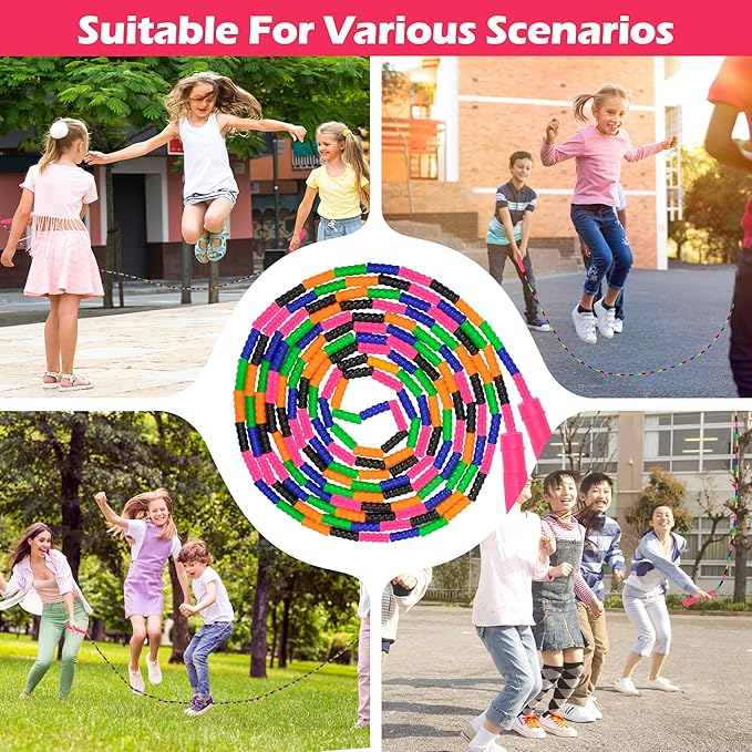 - Well Made (2 Pack) 16 Ft Beaded Jump Rope: Features 1 inch(2.5cm) plastic segmented beads over a solid, long-lasting braided nylon cord. Soft colorful TPU beads are shatterproof and wear-resistant, which offer full protection and durability to the inside rope.