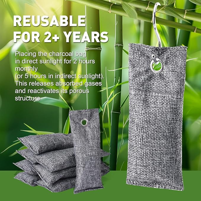 - 【Air Fresheners for Home】:Refresh your home's air for 2 years with our rechargeable charcoal deodorizer bags odor elimination, just sunbathe monthly. Perfect for bedrooms, drawers, and more. Eco-friendly & cost-effective
