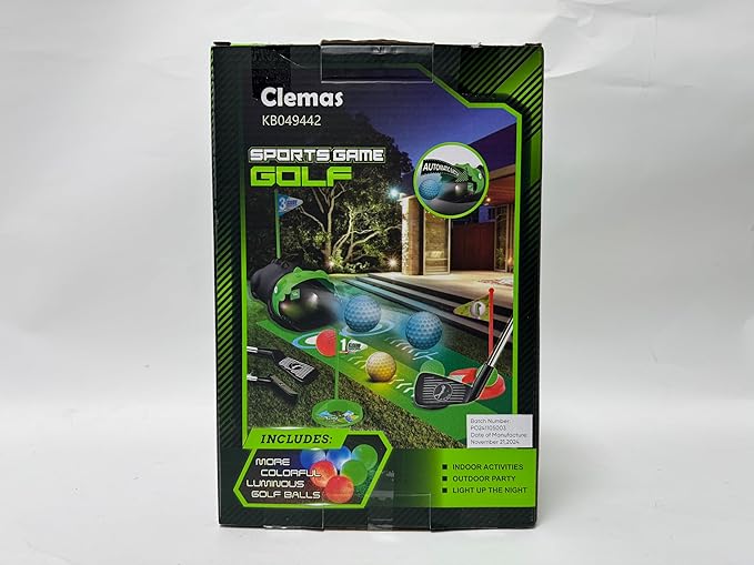- 【Exclusive Led Automatic Ball Returner】The classic golf fun comes next level with CLEMAS exclusive patented auto ball returner. Once kids hit the golf ball into the dinosaur's mouth, look out! The dinosaur will toss the ball back to them for more interactive putting fun. NOTE: 2 X AA batteries Needed (Not Included).