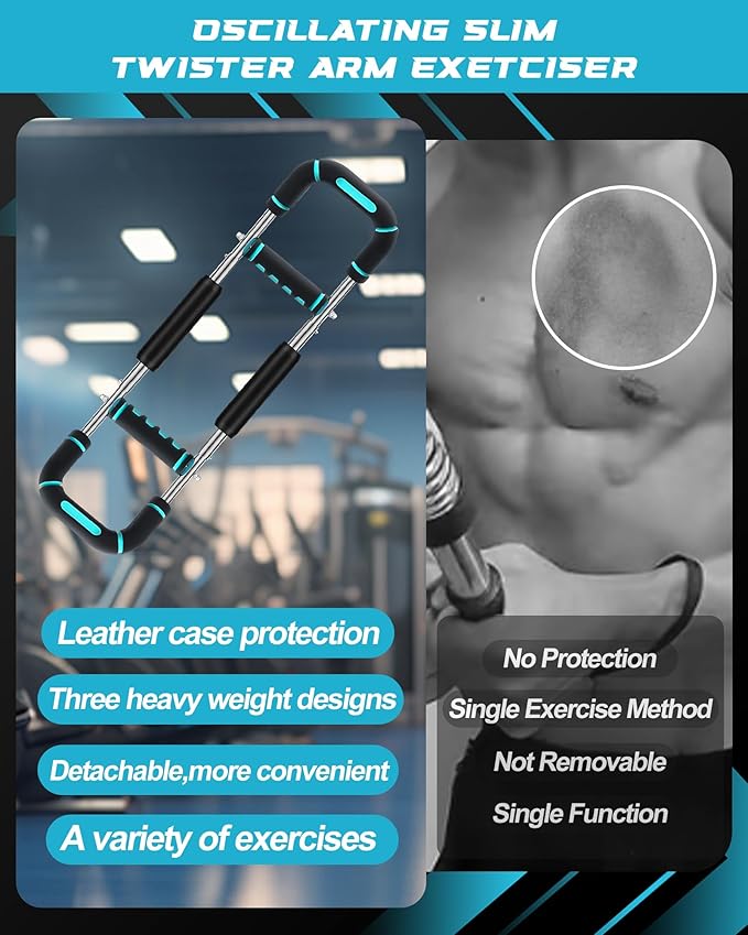 - Durable, Comfortable & Sturdy Design: Built with high-strength metal springs and wrapped in a durable leather cover, the twister arm trainer for men offers solid stability and reliable resistance. The anti-slip foam handles ensure a comfortable grip, preventing hand fatigue and discomfort during your workouts