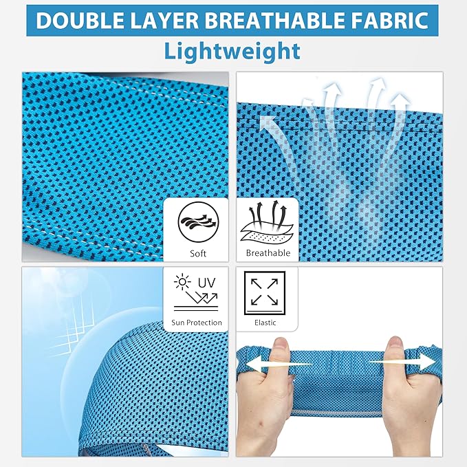 • Non-Slip & Elastic: The inner layer of the sweat headbands for women is covered with anti-slip silicone dots to ensure the headband stays in place during exercise, and there is an elastic band on the back to help secure your hair; The cooling headband is lightweight and breathable, suitable for head circumference 48-55 cm(18.9"-21.65") without being tight