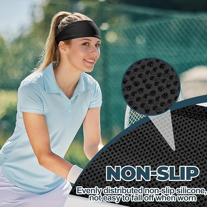- Non-Slip & Elastic: The inner layer of the sweat headbands for women is covered with anti-slip silicone dots to ensure the headband stays in place during exercise, and there is an elastic band on the back to help secure your hair; The cooling headband is lightweight and breathable, suitable for head circumference 48-55 cm(18.9"-21.65") without being tight