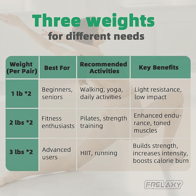 - Designed for Women – Sculpt, tone, and strengthen with Frelaxy ankle weights! We focus on a better fit for women with thoughtfully designed sizes and adaptability, ensuring maximum comfort and an optimal workout experience tailored to your needs. Add the perfect resistance to build muscle, burn calories, and enhance your fitness routine, whether it's yoga, Pilates, aerobics, walking, or strength training.